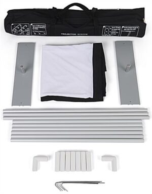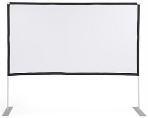 This outdoor movie projector screen is lightweight, making it highly portable in classrooms, outside tradeshows, graduations, and home theaters with friends and family. The yard display is made of wrinkle-free polyester that can be machine washed, providing a sleek and clean appearance at all times. Our floor standing portable outdoor movie projector screen also has a collapsible aluminum frame and plastic joints that can easily be assembled within minutes without any tools required. This convenient and versatile display allows you to quickly set up and break down where ever you choose to gather as a community or company. The 100″ diagonal yard display has a 160° wide viewing angle and 16:9 aspect ratio, allowing someone to sit comfortably where they choose. This lightweight floor standing fixture includes a black carry case with the assembly instructions conveniently printed on the side to have at all times. Also included are 4 ground stakes to provide a stable and secure display while using it outside watching films or participating in an outside school event. Use our collapsible outdoor movie projector screen to create a bright, clear image while enjoying a film, graduation, outside presentation, conference, and more.