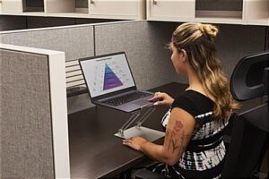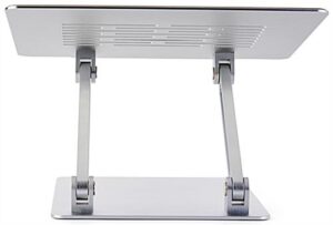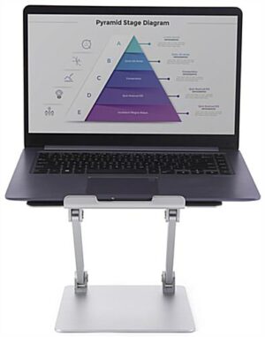 Our adjustable laptop stand for desk has an ergonomic design, providing a portable and comfortable solution for any traveling professional, trade show attendee, or work from home employee. The aluminum display can absorb and discharge heat quickly via the ventilation holes. Increase your productivity by utilizing the customizable height and angle features. Each portable adjustable laptop stand for desk has a 10” x 9.4” tray surface which folds down to 1.97” thick. The height modifiable unit offers a sleek ergonomic design profile that can fit any laptop up to 17″ wide. The aluminum adjustable laptop stand for desk also features anti-skid pads on the surface area, allowing your computer to stay secure throughout the workday. Your office staff will appreciate this addition to their workstations!
