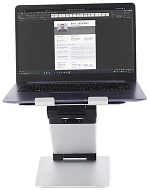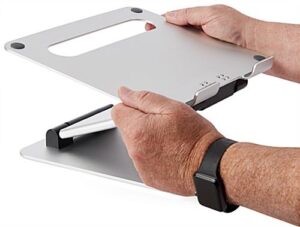 9.4″ d Sit Stand Laptop Holder w/ Height & Adjustable Angle, Portable – Silver
