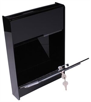 This black wall mount ballot box is a great addition to the office environment. This holder features a lock and an insert slot on the top, making it perfect for holding confidential documents and payments. The ballot box that holds 8-1/2″ x 11″ documents features an 8-1/2″w x 5-1/2″h name plate for posting the type of documents the display is meant to collect. Keep payments and private letters from employees safe in this secure office document holder. Store any size document in this secure locking holder. This container will ensure confidentiality and safe transfer of important papers.