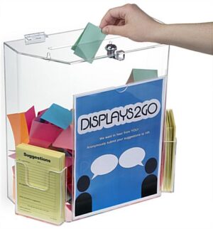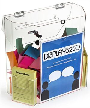 Acrylic Ballot Box w/ 8.5” x 11” Frame, Lock & 2 Pockets, Wall or Tabletop – Clear