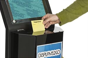 Great for suggestions, donations, and more, this black sign stand with charity box has a variety of uses. This two-in-one floor display provides the function of a large ballot holder coupled with the command of a sleek and tall frame. Suitable for use at community centers, museums, restaurants, and more, this acrylic donation sign stand is designed to be durable without compromising style. Featuring a large ballot holder, you can safely use this display piece for fundraisers or collection drives with high anticipated participation. Guarantee a strong turnout by placing eye-catching graphics up to 11” x 14” in size on this sign stand to attract more passerby attention. Each acrylic donation container features a lockable lid to help secure its contents.