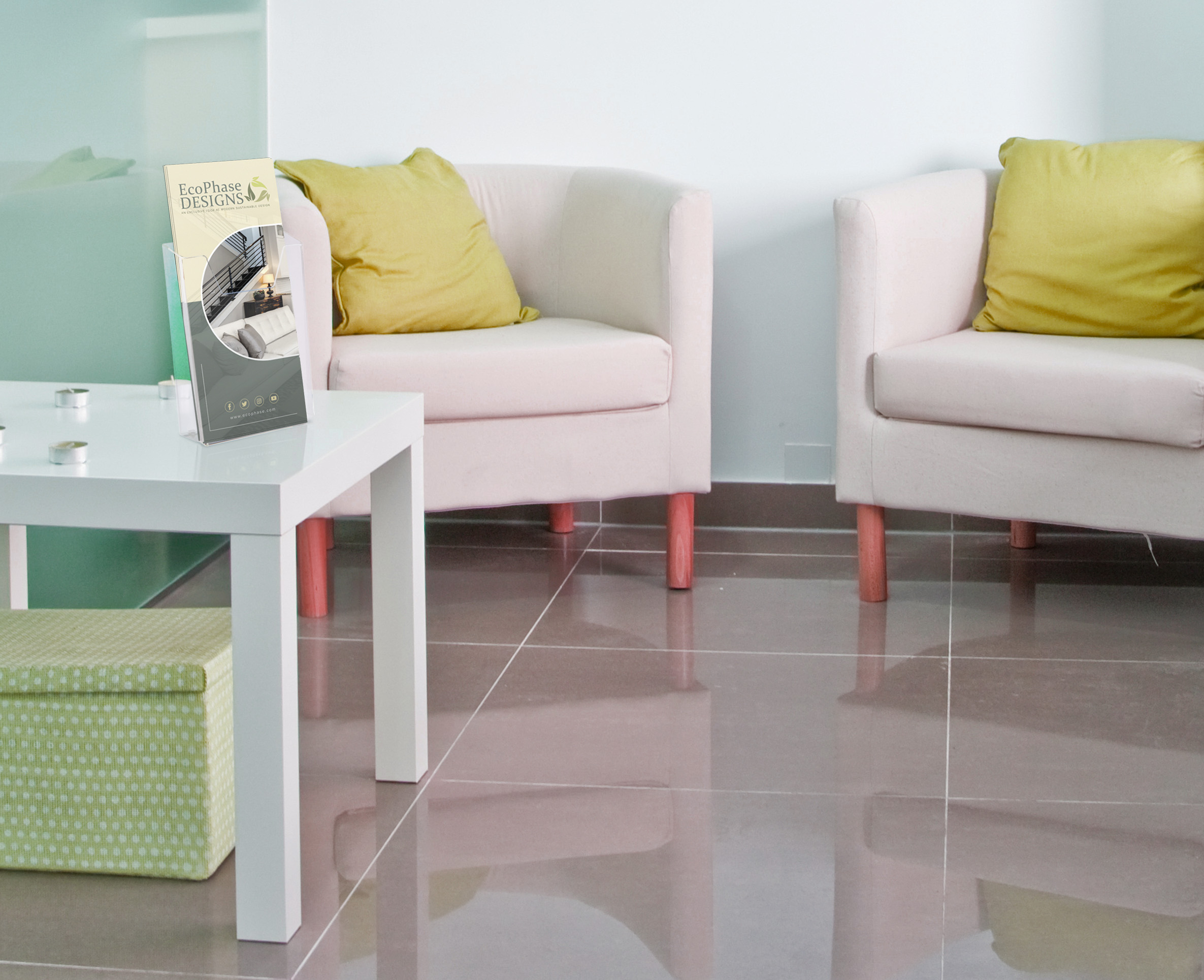 Acrylic Brochure Holder for Wall with 4-1/8″w by 1-1/4″d Acrylic Design