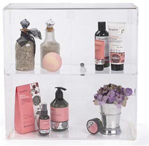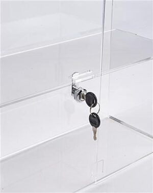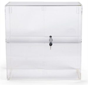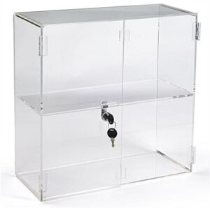 These countertop jewelry showcase displays, countertop display cases are crafted from crystal clear acrylic to offer an affordable alternative to real glass countertop showcase displays. Acrylic offers the same visibility as glass without the high cost and it is much more resilient to breakage! Countertop display cases feature a cam lock with a set of two keys to keep items safe. A shelf sits midway between the top and bottom of these countertop showcases to offer two levels of showcase space. Hinged doors open to allow full access to displayed items. These doors can either face customers or the store associate. Rubber feet keep these countertop display cases sturdy and prevent slipping on counter top areas. Why pay for custom countertop cases? We have a huge selection of stock cases available!