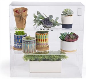 Acrylic Countertop Display Case w/ 2 Shelves & Hinged, Locking Door