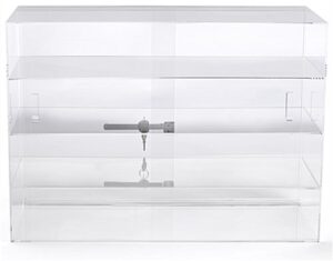 Jewelry Display Case – These display cases feature sliding doors that lock with the included ratcheting style lock. Jewelry display cases can be used with the locking doors facing either the clerk or the customers. Case measures 16″h x 22″w x 8.5″d. The three shelves are 3-5/8″ apart.