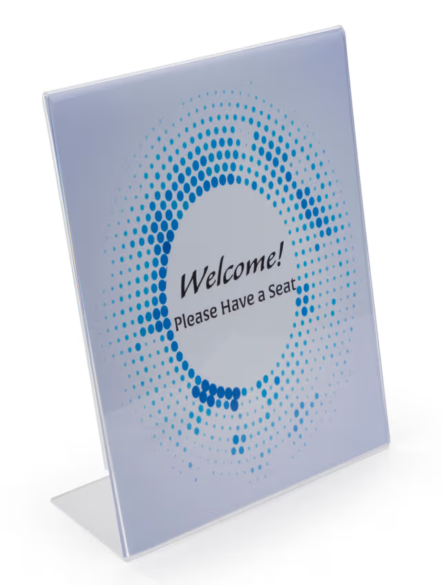 This acrylic display frame is a versatile signage solution ideal for retail, restaurant, office, and tabletop use. Made from clear acrylic, it features a sleek, slanted design that enhances visibility while blending seamlessly into any environment. Easy loading access allows for quick updates to graphics, menus, or promotional materials without disrupting the display. Available in many sizes, including common sizes like 8.5″ x 11″ and 11″ x 17″, each frame is crafted for durability and clarity, with polished or frosted edges depending on the model. Whether showcasing daily specials, event schedules, or marketing messages, this acrylic display frame offers a professional way to elevate communication.