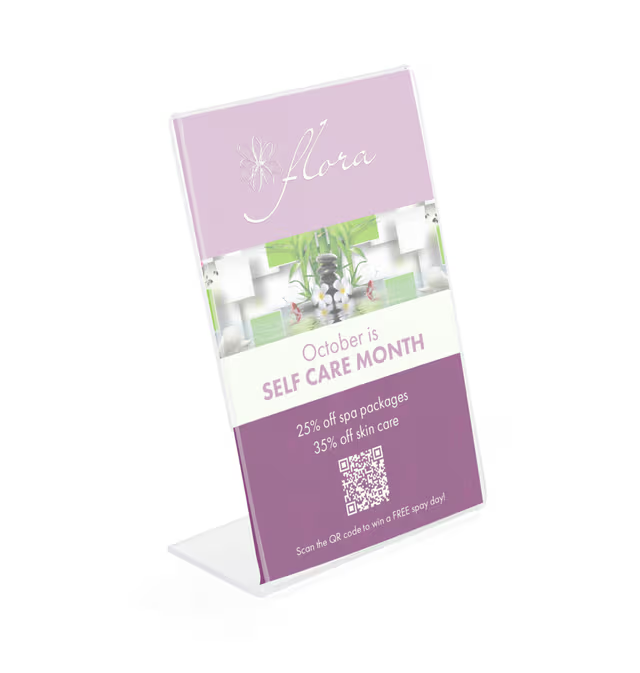 This acrylic display frame is a versatile signage solution ideal for retail, restaurant, office, and tabletop use. Made from clear acrylic, it features a sleek, slanted design that enhances visibility while blending seamlessly into any environment. Easy loading access allows for quick updates to graphics, menus, or promotional materials without disrupting the display. Available in many sizes, including common sizes like 8.5″ x 11″ and 11″ x 17″, each frame is crafted for durability and clarity, with polished or frosted edges depending on the model. Whether showcasing daily specials, event schedules, or marketing messages, this acrylic display frame offers a professional way to elevate communication.