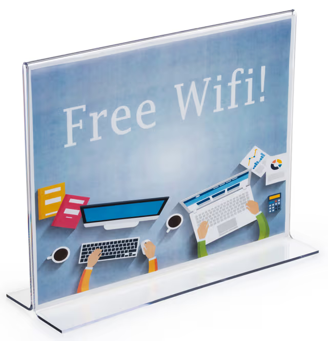 These sign holders are functional, multipurpose displays. Our graphic frames are countertop units made out of clear acrylic for double sided viewing of printed media. These sign holders have polished edges for an upscale look design and keeps photos clean and in clear view of customers or patrons. Add a few frames around the office to promote a new line, listing or service. These frames are an efficient communication alternative. These horizontal sign holders are loaded from the bottom, just slide-in one or two printed graphics. These horizontal graphic frames are the perfect display for your advertisements at for real estate agencies, banks, insurance companies and retail stores.