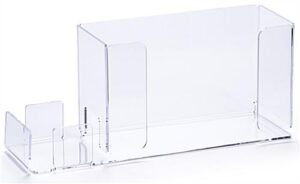 This acrylic glove box holder with sanitizer pocket frees up counter space and keeps essential personal protective equipment easily accessible to employees. Each hygiene station is durable, can hold one 9″ wide PPE box, and has ample space for up to a 32oz. bottle of hand sanitization gel. This acrylic glove box holder with sanitizer pocket easily fits on counters or tabletops. Use in medical offices, classrooms, office areas, and even mechanic garages where PPE changes are frequent.