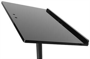 This basic podium is designed for a variety of uses, such as announcing award recipients, conducting an orchestra, or displaying menus for waiting guests. Each unit includes a black acrylic reading surface with a matching aluminum post and base offering modern visual displays. Made for durability, the acrylic is 0.5” thick and the post and base are anodized, helping to guarantee years of use with this well-designed podium. The reading surface on this lectern includes a 1” book stop to support your notes during a presentation for award recipients, sheet music for a performance, or a seating chart to assist a hostess. With its sleek contemporary design, this podium is easy to assemble, requiring only a screwdriver and a few minutes. This stylish yet affordable lectern is a great addition to any presentation space, auditorium, or restaurant for menu displays.