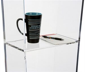 This custom graphic transparent podium is perfect for a professional presentation hall. The unit, made out of a clear acrylic material, gives the lectern a contemporary design and is great for any occasion. Imbedded with a 2-color image of your own creation, the customizable transparent podium will increase your company’s exposure when placed in front of a large crowd. The clear acrylic pulpit also includes an interior shelf to place notes, pens, or a drink on while speaking in public. Your franchise’s image or design on the front panel of the podium will heighten brand awareness and create a buzz among listeners while presenters are addressing the audience. Add this lectern to your business today!