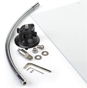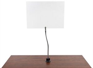 This flexible gooseneck safety shield has a 22″ x 16″ clear acrylic panel that can be set up vertically or horizontally based on your specific needs. Great for hostess stands, cashier counters, banks, reception desks, and more; this adjustable protective barrier is a wonderful way to create a safer and more sanitary environment for your employees and patrons. This acrylic flexible gooseneck safety shield is secured to surfaces using a heavy-duty commercial suction cup that works on most non-porous surfaces such as glass, metal, laminate, countertops and more. The easily adjustable pole feature is ideal for many work enviorments, allowing you to pull the protective barrier up when patrons or patients are approaching and move it away when you no longer need it. This clear hygiene panel is 0.125″ thick, providing necessary protection and separation with little to no obstruction of views. This gooseneck splash shield will create a more sanitary environment, while also helping lower the transmission of viruses during everyday business transactions, keeping your staff and customers safer.