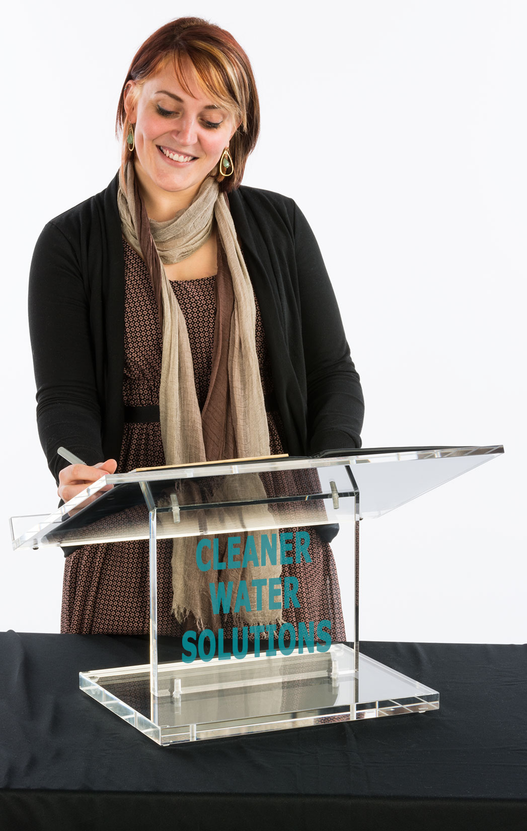 Acrylic Tabletop Lectern, Clear, Custom Logo Vinyl Printing