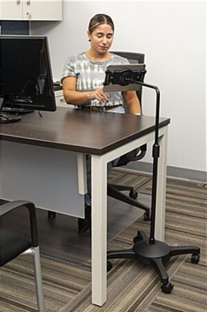 L-Arm Adjustable Tablet Holder with Wheels Offers Rotating Viewing Angles