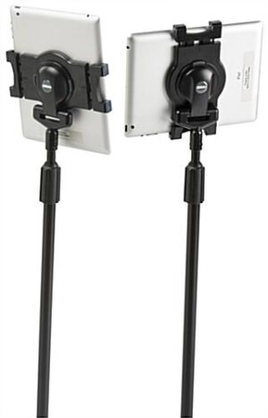 The height adjustable iPad stand provides a hands free fixture for Apple® tablet use. This floor standing touchscreen device holder is non-locking and great for residential use. This height adjustable iPad stand that fastens devices in a secure position can be used for watching movies and videos, listening to music, or playing games with the family, all while keeping a tablet in arm’s reach. Holding a tablet can get tiring and uncomfortable so snap it into this kiosk for a hands free, ergonomic display! This universal and height adjustable iPad stand can hold most 7” to 10” tablets so there is no need to worry about sizing digital notebooks to the kiosk. This Apple® accessory can hold portable PC’s including a variety of iPad models. This height adjustable iPad stand that has a shell bracket does not have a fully encompassing enclosure; therefore, the unit can accommodate an assortment of tablet sizes either in portrait or landscape format! Pivot the mount for the different orientations.