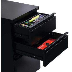 - Box/Box/File, Two 6″ high box drawers, one 12″ high file drawer.