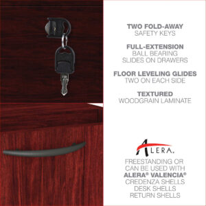 Alera Valencia Series Full Pedestal File Cabinet, 15.63″W x 20.5″D x 28.5″H, Mahogany