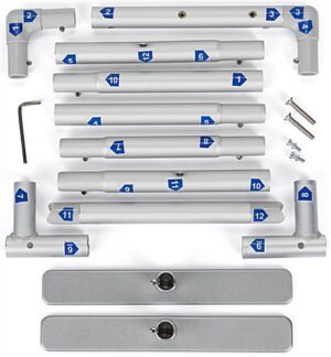 This tabletop banner frame is a compact way to help promote health and safety within your hospital, university, or grocery store. Designed with numbered labels for assembly, the lightweight aluminum base with silver finish is designed to display slip-on polyester graphics along with your touch-free hand sanitizer dispenser for increased brand awareness and protection from the spread of germs. This portable unit includes all hardware and two wide bases for stability, and easily knocks down to fit inside the black nylon carrying case that’s conveniently included. Use this 12″W x 19.5″H tabletop banner frame to promote your unique advertising while preventing the spread of bacteria within your business establishment.