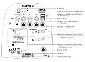 This portable PA system with wireless mic includes two speakers, two speaker stands, and a handheld microphone for a complete audio equipment setup. As a result, the speaker can move around the platform without wired constraints. This portable PA system with wireless mic includes the MegaVox 2 speaker with a crowd reach of 1,000+ people, allowing for the equipment to be used at conferences with many attendees. The Mega2-AIR is a companion speaker with an AIR wireless transmitter that can double the sound range and avoids the hassle of connecting extra cables. Connect up to four handheld microphones to accommodate group vocal performances. A 12V battery operates for up to 8 hours on one charge. The tripod speaker stands have a center point connection for ideal stability in indoor and outdoor environments. Our black portable PA system with wireless mic is a complete audio equipment solution for your next conference, talent showcase, or award ceremony.