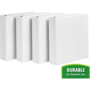 Avery Durable View Binder, 2″ Slant Rings, 500 Sheet Capacity, DuraHinge, White, 4 ct