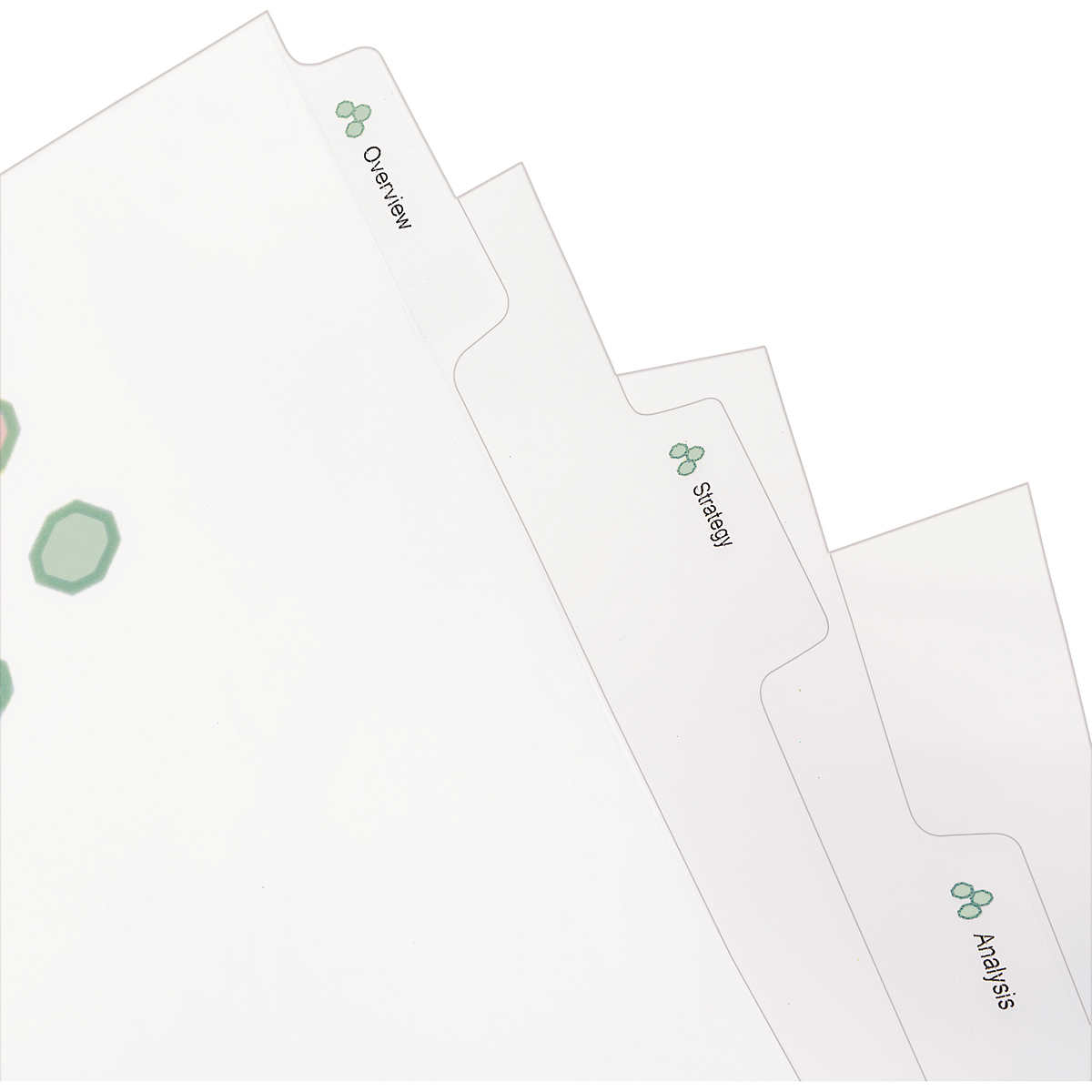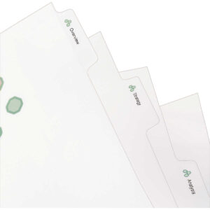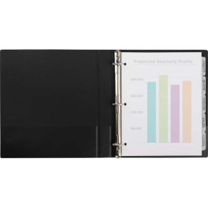 - Clear or colored plastic dividers add impact while making it easier to flip between sections
