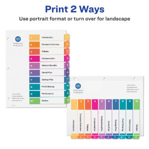 - Double-sided section titles page and tab dividers can be used in portrait or landscape orientation