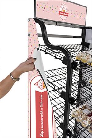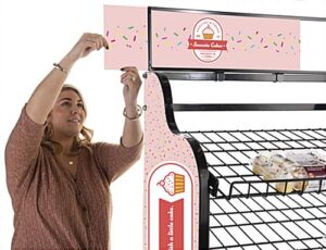 Our custom bakery rack signage for BAKCRT6NBK is the ideal branding update to your existing 30 x 40 wire cart (sold separately). Each contour cut panel is printed on lightweight styrene material with a matte finish. The personalized kit comes with (4) 3-inch strips of magnetic tape to help the side panel graphics effortlessly adhere to the wire cart. When applied, your vibrant, full-color UV-printed panels span the sides and header of each unit. Use this replacement custom bakery rack signage for BAKCRT6NBK to help you generate a compelling advertising message with fresh, full-color, personalized graphics!