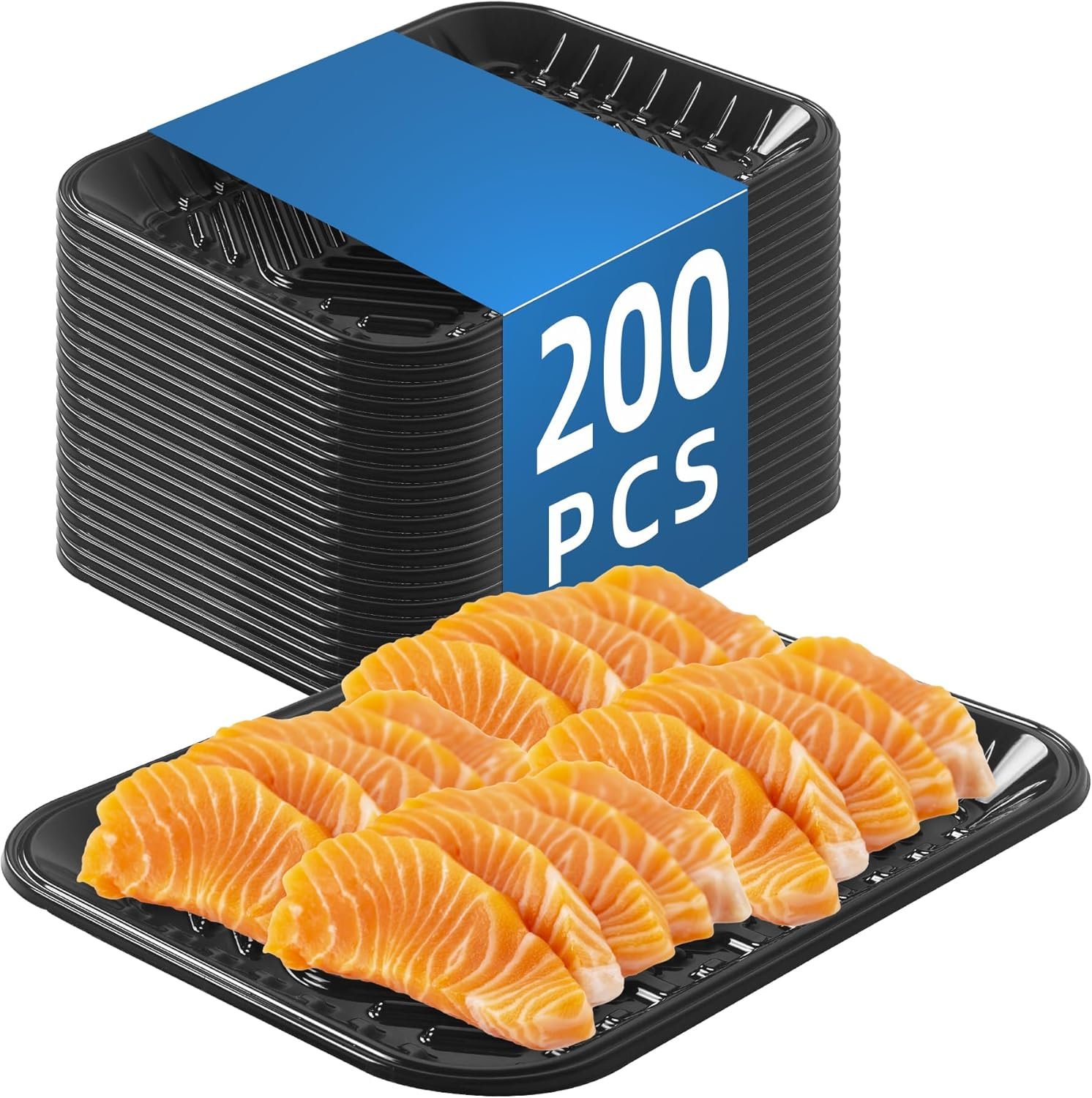 Black PET Plastic Meat Tray 10 1/2″ X 8″ X 1 3/10″, 200PCS, Perfect for Meat, Seafood & Fruit Display