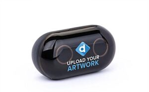 Put your personalized graphic directly on our promo branded wireless earbud case to create a memorable wedding favor, company branded corporate gift, or trade show giveaway. The unique earphones with logo printed charging case feature call function, voice control, stereo sound, and explosive bass sound. These promo branded wireless earbuds with Bluetooth technology include a magnetic-close 300 mAh charging case with battery indicating lights. The earphones are capable of up to 3 hours of continuous music and talk time for convenience and ease of use. Complete with a Bluetooth working range of up to 23 feet, the earphones with custom case offer real innovation. Included with every purchase is a non-branded white gift box, a USB charging cable, and a user manual with easy-to-follow set-up instructions. Our custom logo printed promo branded wireless earbuds are a perfect way to say thank you to your customers and unlike a pen or a key chain, this custom tech product will not be thrown away after one use.