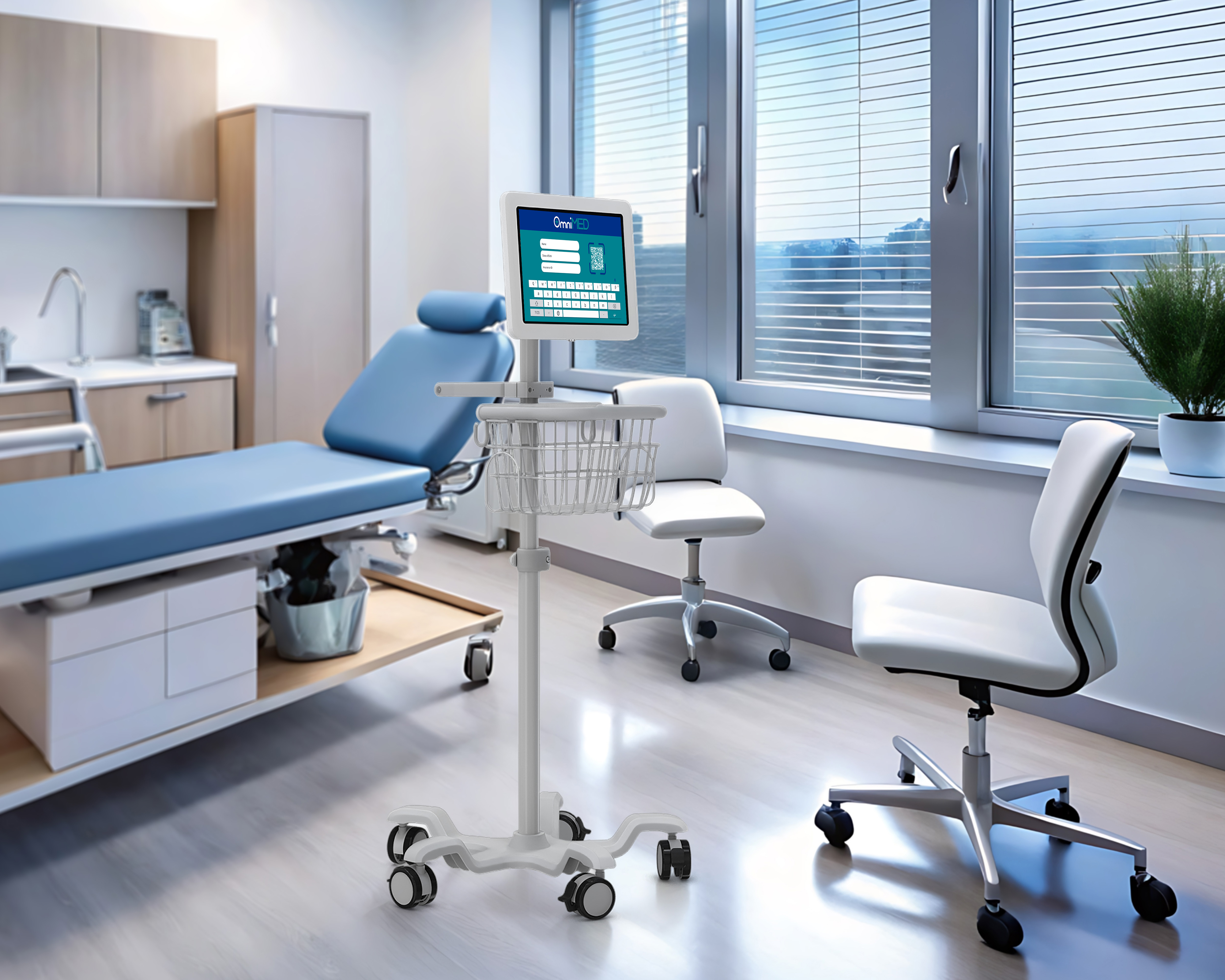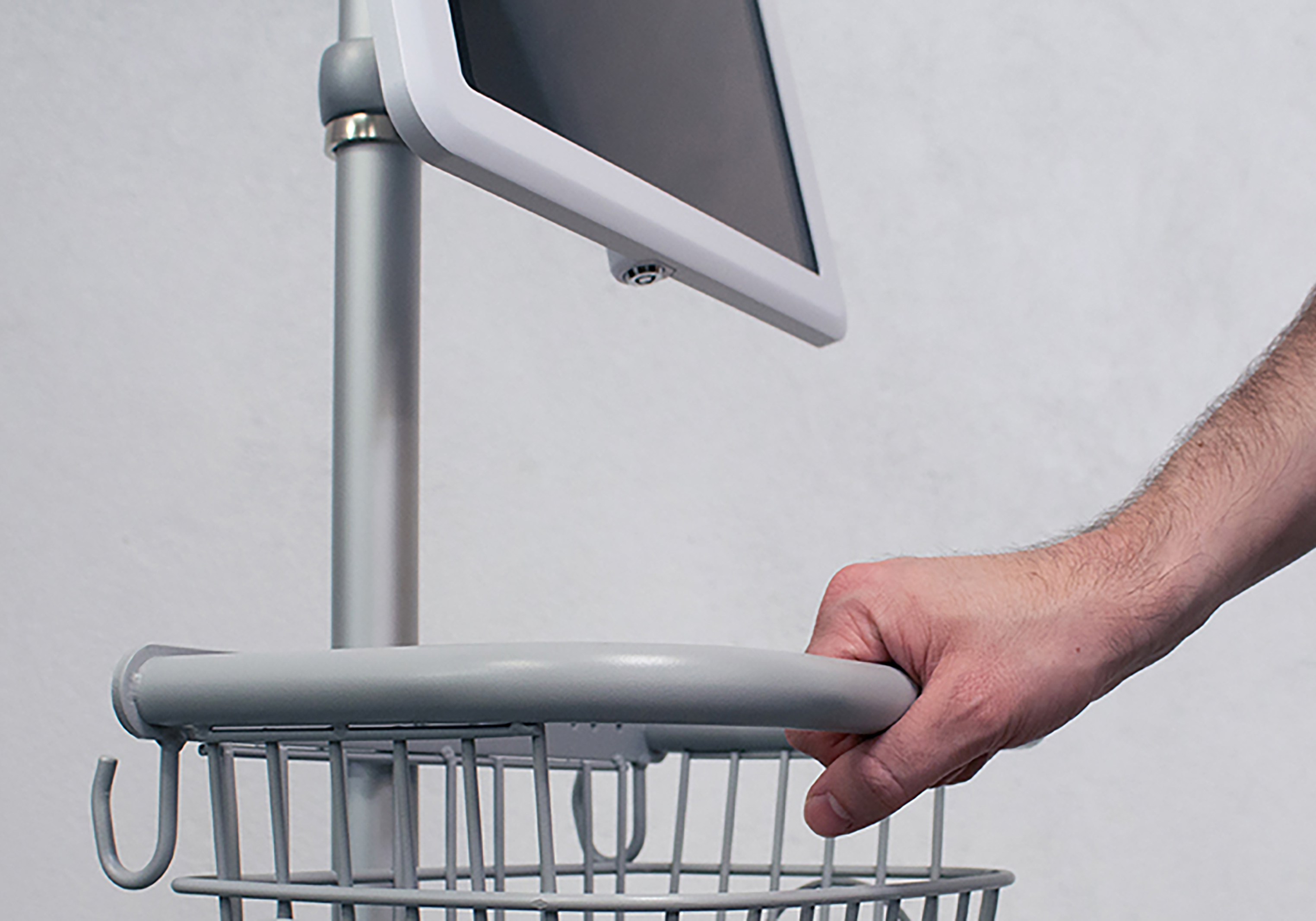 Looking for a mobile, professional way to deploy an iPad at the point of care in busy healthcare environments? This locking medical mobile iPad cart is engineered to securely support 13″ iPad devices, including the iPad Pro 13″ (7th Gen) and iPad Air 6, creating a reliable solution for digital charting, patient engagement, and clinical workflows. Designed with healthcare mobility in mind, this white medical cart features smooth-rolling wheels, a rear push handle for easy maneuvering, and an integrated basket to keep essential accessories within reach. The locking tablet enclosure helps protect devices during daily use, making this medical mobile iPad cart an ideal point-of-care solution for hospitals, clinics, and medical offices that require flexibility without sacrificing security.