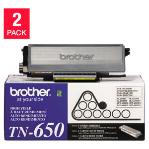Brother TN650 Toner Cartridge, High Yield, Black, 2 pk with Bonus Ream of Paper