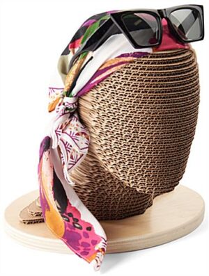 This unisex cardboard mannequin head measures 13.75” tall, providing ample space to showcase a variety of fashion accessories such as sunglasses, scarves, hats, and hairpieces. Each eco-friendly countertop bust features a unique, eye-catching layered design that is easy to assemble with convenient individually numbered tiers to guide you through an effortless setup. Because our ultra-modern cardboard mannequin head with abstract style is constructed of 100% recyclable material, you can be kind to the earth by fully recycling this display after its use is no longer needed. This eco-friendly unisex bust form sits on an oval poplar wood base with natural laminate finish and lightweight construction to easily move this fixture from one location on your selling floor to another. With its ultra-modern and neutral design, this multi-layered cardboard mannequin head makes a statement without distracting from your merchandise. Allow your best accessories to stand out with this abstract countertop bust form that will leave a lasting impression on guests long after they leave your store!