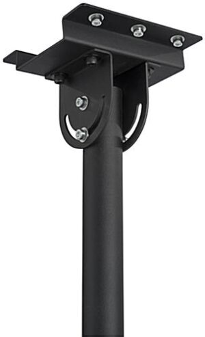 Suitable for lobbies, restaurants, and retail environments, this suspended ceiling TV mount features an adjustable height design for the perfect LCD placement in any setting. VESA compatible brackets allow most major flat screen brands to fit with ease for a versatile solution. Each hanging ceiling TV mount is capable of accommodating two LCD monitors at once, each ranging from 30” to 60” in size, and weighing up to a combined 176lbs. The steel and aluminum construction offers a durable design that will last, while the black powder coated finish remains pleasing to the eye. Once installed, you can tilt the brackets 5° upwards or 15° downwards to angle your flat screen towards customers. Get a digital signage solution such as this ceiling TV mount for your establishment to effectively advertise to customers!