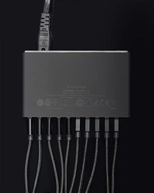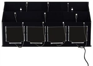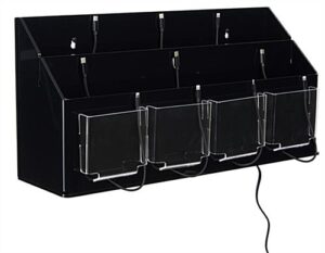 This multi device charging station organizer is the perfect accessory for events, lobbies, and waiting areas. Equipped with ten black charging cables, each fixture allows you to add numerous cell phones or tablets to power-up at once. The device charging station organizer is a great way for boosting your smart gadget battery while keeping it neatly placed within the dock. These fixtures are compatible with Apple® cell phones, Galaxy tablets, or any other products that utilize either Lightning or Type C connectors. This countertop station organizer includes rubber feet to keep the dock stabilized when placed on the desk or counter. The smart power-up kiosk will provide a stress free area for passersby knowing their battery will be restored in a short amount of time!