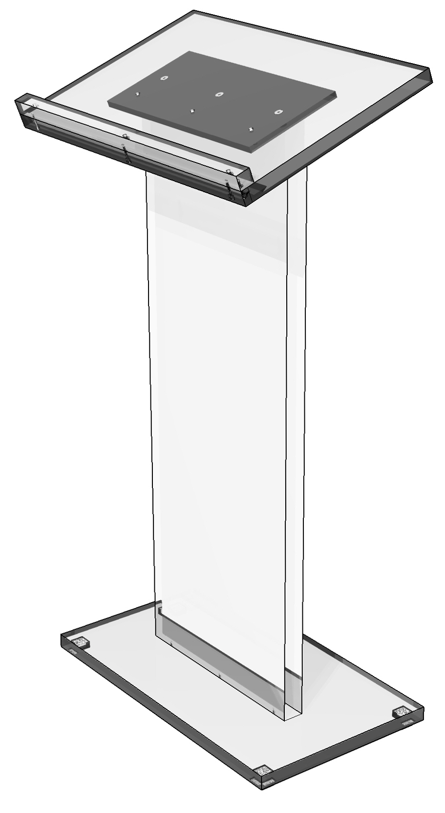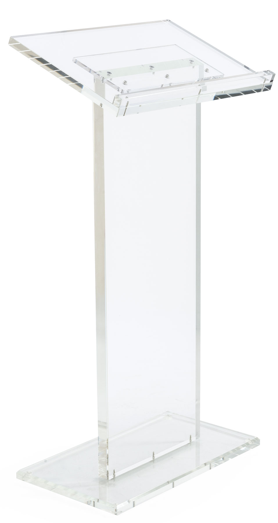 This acrylic lectern podium is designed to bring attention to the speaker during oral presentations! Each clear church pulpit is a knockdown display for a more cost effective shipping method. The custom podium stand is easy to assemble with hardware and tools provided. Each clear church pulpit has a large reading surface for holding ample presentation materials and notes while in use. The podium is 45.5” tall providing a standard height for most speakers. Each custom stand comes with cleaning solution & cloth for removing dust and dirt from the display!