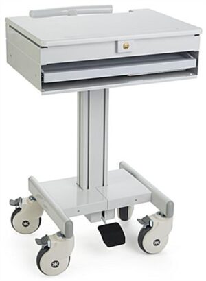 Computer Cart w/ Height Adjustable Pedal, Locking Drawer – Gray