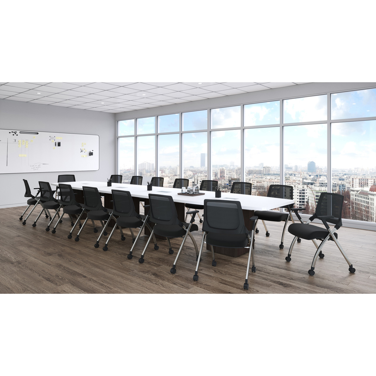 If you want to buy office furniture that makes a professional statement about your business, opting for this typical can be a great idea. It offers a decent boat shaped table top that spans a length of 20 feet. This table top is perfect for in large conference rooms due to its capacity to accommodate several people. This typical also features a cube base. The base and the table top both come in a variety of eight finishes, all of which assist in elevating the aesthetics of the room. The laminate construction of this base and boat shaped table top not only boosts the aesthetics, but also helps in keeping the furniture from wearing out. You can use the cube base to support the boat shaped table top and increase the office aesthetics with the perfect blend of furniture this typical brings to you.