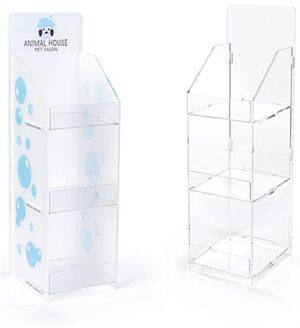 This folding acrylic 3 tier retail display case creates an ideal merchandising display in stores and at conventions. Showcase impulse items such as toys and snacks with this clear shelving unit. The folding acrylic 3 tier display case requires no tools to assemble or breakdown, making it great for bringing to events. This three level stand is a convenient fixture for showcasing merchandise. Enhance your store layout with this clear shelf unit that fits comfortably on your countertop near your checkout station to capture impulse purchases. Stylish, affordable and functional are the perfect adjectives to describe this acrylic 3-tier display case.