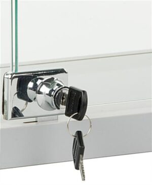 This aluminum display case is intended to be placed on a countertop and model products. The tempered glass construction and silver framing design helps achieve a simple and professional arrangement. Model and showcase delicate, expensive, and valuable merchandise behind the locking doors. Rather than using a wall mounted cabinet, each countertop display case allows customers to view items more closely before asking for assistance. Three height adjustable shelves and a tempered glass top canopy complement the products within these locking store fixtures. Complete merchandising arrangements with a display case that is compact enough to hold watches, jewelry, electronics, and collectible trinkets.