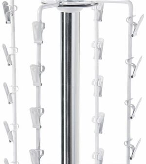 This rotating display strip stand is the perfect way to offer potato chips, bags of candy, and other impulse purchases to customers at checkout. These countertop display strip stands promote last-minute sales in line in any retail shop, gas station, or convenience store. Featuring a revolving 4-sided frame, this fixture comes with 36 clamps and a clear plastic sign holder mounted on top. With a 360° rotation, merchandisers can place multiple kinds of pre-packaged food options including different brands or flavors. This display strip stand can be used as a point of sale fixture to tempt customers at checkout, or even at a small social function’s snack table.