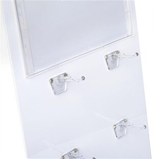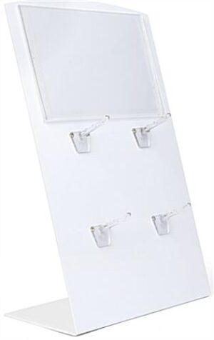 This peg hook stand, hook display is made of durable acrylic, perfect for use in heavily trafficked areas. The white acrylic helps call attention to the display. A hook display has a clear acrylic graphic holder on top of the display to help promote merchandise placed on the stand. This graphic holder displays an 8-1/2″w x 5-1/2″h poster. A hook display has a footprint of 10″w x 5″d, taking up minimal counter top space while still promoting products in an effective manner. Purchase a counter top stand, hook display today to create a great presentation in your store that is sure to entice customers to buy your products!