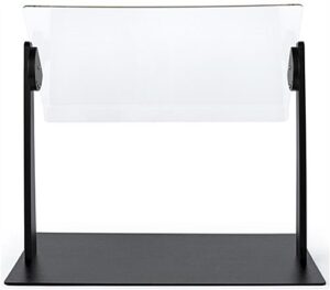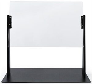 This adjustable countertop sneeze guard is an easy solution for keeping food and beverage areas protected against airborne contaminants. Each protective shield features a 3/16″ thick clear acrylic panel that provides spray and splash protection while allowing guests to have an unobstructed view of their options. Perfect for catered events, restaurants, dining halls, hotels, and more, this adjustable countertop sneeze guard with shatter-proof ABS plastic base stands securely in place within high-traffic areas. Easily clean up food drips and spills off this shield’s platform with a mild cleanser or place in warm soapy water for a deep clean. Each protective acrylic barrier accommodates 4 different angle options, height adjustability, and 90º tilting functionality that can be easily modified depending on the required applications. Ensure that patrons have a safe and hygienic dining experience with this adjustable countertop sneeze guard.