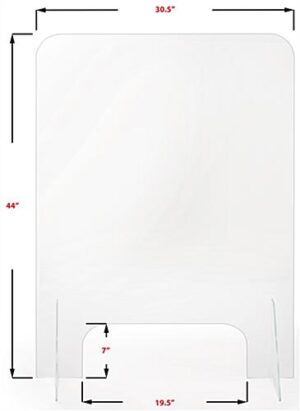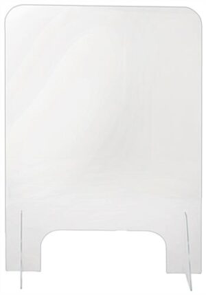 This polycarbonate splash shield has overall dimensions of 30.5″ W x 44″ H making it the perfect size for reception desks, bank teller windows, checkout counters, or cashier stations. The one-panel protective panel has a countertop placement style with a convenient 19.5″ W x 7″ H transaction slot, allowing you to create separation during your daily business transaction when physical distance may not be an option. This impact-resistant polycarbonate splash shield has a convenient knockdown design, allowing you to break it down with ease and travel to events, trade shows, or corporate meetings with it. Our thermoplastic protective panel is an easy way to create physical distance between your employees and patrons and lower the spread of viruses. The impact-resistant material used for this sneeze guard makes for a durable and long-lasting design. This countertop polycarbonate splash shield is an easy way to enhance the health and safety protocols in your office space, educational environment, and retail store to bring a sense of ease to those navigating through your facility.