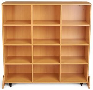 This roll and write cubby storage is the best way to store classroom materials or write out the daily class schedule. The non-adjustable 12-compartment mobile unit fits toys, books, or art supplies, along with a non-ghosting whiteboard back for sharing messages. This roll and write cubby storage with locking casters can be quickly moved around to reveal the writing surface or make room for activities and set firmly in place again with the footswitches. The durable 12-compartment MDF-constructed shelving holds up to 10 lbs. per shelf, keeping your classroom orderly and neat. Cleaning is a breeze as well; simply wipe down both the framing and writing surface with a damp cloth and mild dish soap — no special solutions or tools required! Our mobile cubby storage with locking casters is an organization solution and whiteboard in one and is a perfect addition to any educational setting.