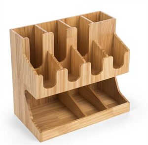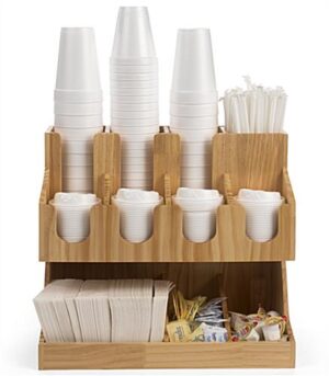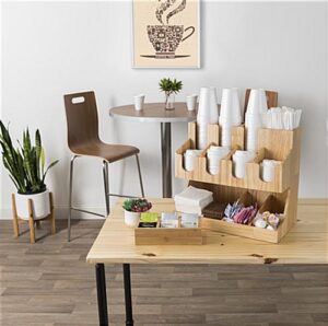 Wood Coffee Condiment Station Organizer – Countertop Cafe Caddy for Restaurants