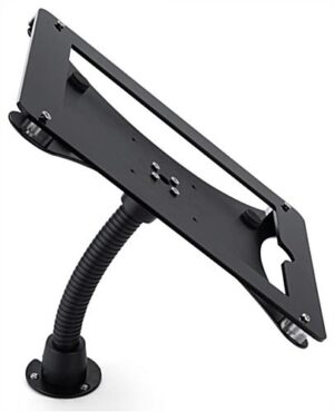 This flex arm tablet mount custom holder for 12.9 iPad features personalized graphics and is an ideal branded Apple POS system for any business. With the included hardware you have the option of permanently attaching the kiosk to a desk or using the weighted base. Security screws keep your digital device secure within the black flex arm mount custom holder for 12.9 iPad and a slot that supports Kensington® brand locks helps prevent theft or tampering. The enclosure allows access to the headphone jack to plug in an Apple square reader (not included). Cable management allows cords to be snaked through the gooseneck arm of the kiosk and kept out of sight. Complete with personalized graphics, this flex arm holder for 12.9 iPad is a terrific way to display a digital device in your business.