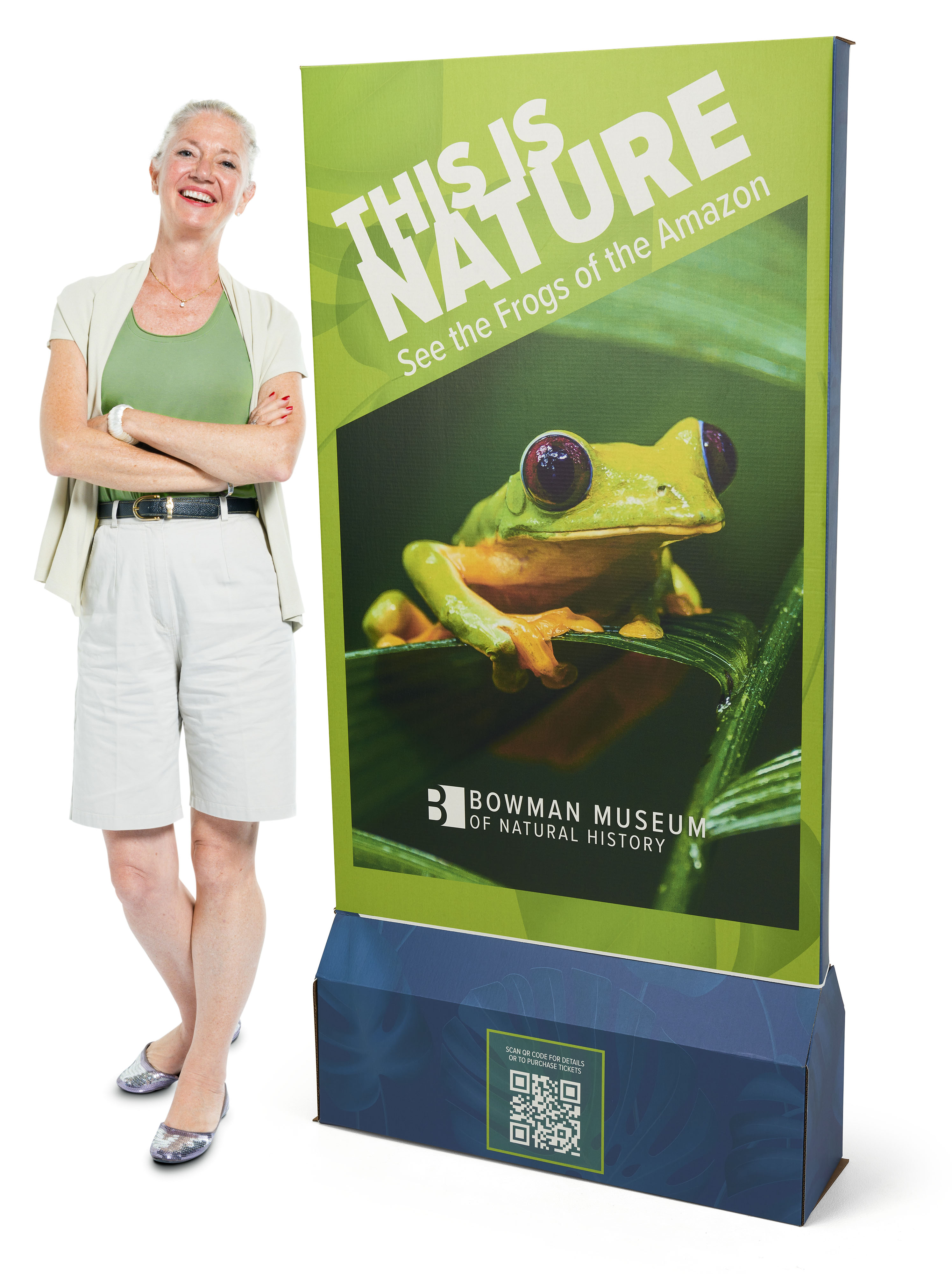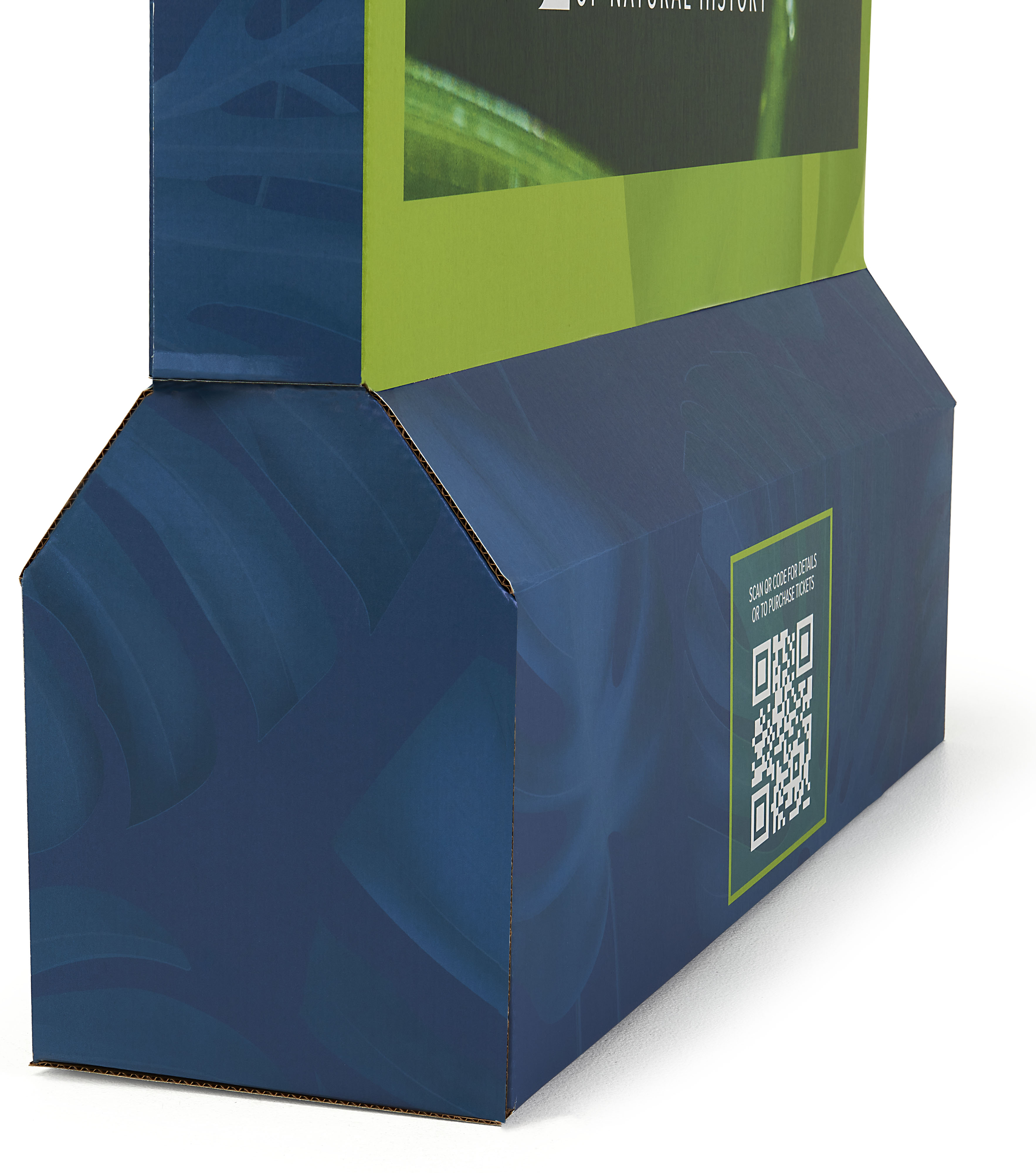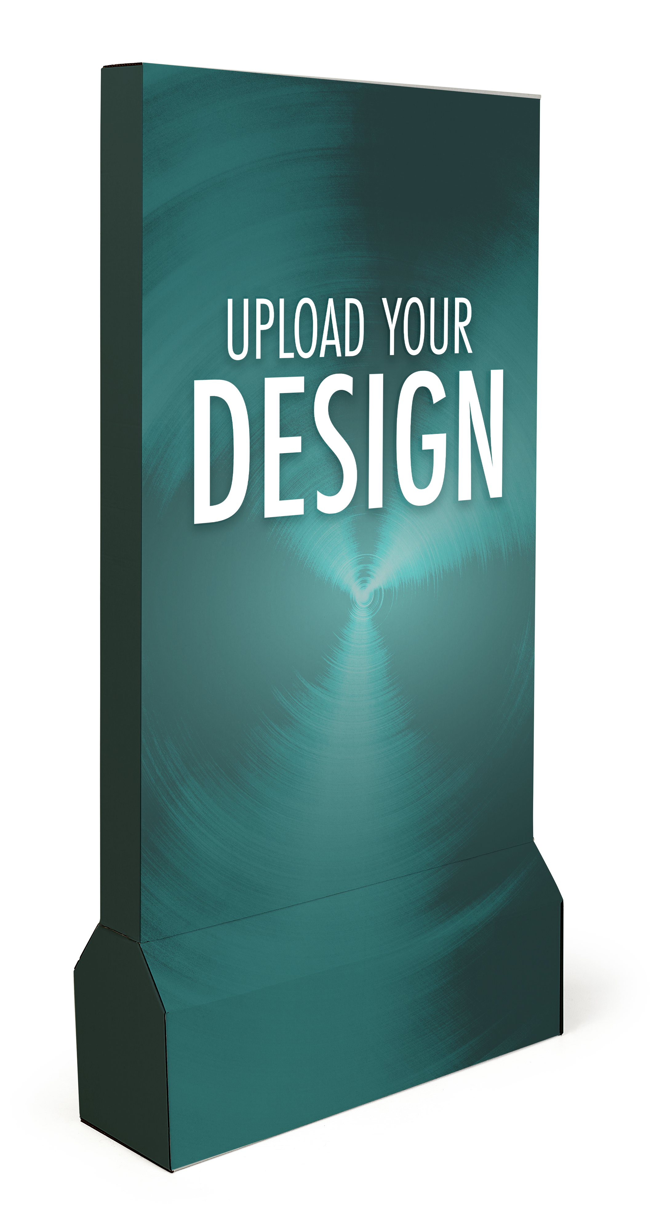 Is your business looking for a bold and dynamic way to showcase advertising or brand messaging? Use our custom printed cardboard banner stand to optimize your branding opportunities within high traffic areas such as trade shows, museums, universities, and more. Captivate the attention of guests coming from either direction with double-sided full color graphics that are printed using our premium UV digital printing method. Perfect for on-the-go traveling events, each custom printed pop-up cardboard banner stand ships flat, is easy to assemble and has an ultra-lightweight build for effortless portability. Add your company’s logo, design a message, or advertise promotions on this dimensional advertising totem by using our DIY designer tool with various color, font, and clipart options. Because our pop-up cardboard banner stand is constructed of 100% recyclable material, you can be kind to the Earth by fully recycling this display after its use is no longer needed. Stage this double-sided personalized totem within your establishment or at your next event to elevate your brand advertising! This dimensional floor standing totem pairs your company’s messaging with impressive visuals to produce an impactful marketing tool that will stand out amongst any crowd. Each poster display has four individual printing areas to maximize the visibility of branding and advertising. Pair this cardboard banner with other custom printed products like our floor decals, tablecloths, hanging banners, and more for a fully branded showcase that will leave a lasting impression on guests!