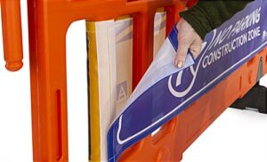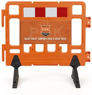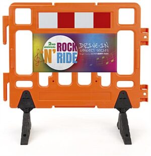 Place this barrier sign on our 43” x 40” FGPFBSMALL plastic crowd control barricade as a way to create a tremendous branding opportunity. This full-color 29.5” x 13.5” mesh vinyl banner allows you to create a unique branding message on both sides and is ideal for outdoor usage. Your purchase includes one double-sided solvent printed poster that easily attaches with hook & loop Velcro connector sides that is highly tear-resistant. Take advantage of a unique advertising opportunity when you add this barrier sign to your 43” x 40” FGPFBSMALL plastic crowd control barricade.