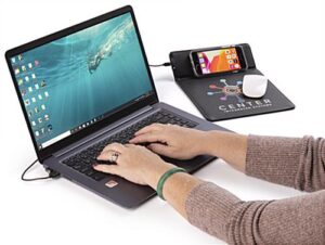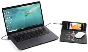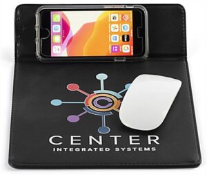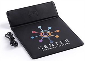 This custom quick charge mouse pad features full-color printing providing for a unique branding opportunity. Wireless technology has become an essential part of our lives, and this station offers a convenient alternative to wired docks when phones need to be repowered. Our black custom quick charge mouse pad will leave your audience impressed when given to customers, employees, and clients as a corporate gift. The sleek, large surface area, stitched edges, and non-slip grip make this station a durable surface for all mice and is ideal in home offices, cubicles, and desktops. Never miss an important text or phone call while waiting for your device to repower. Skyrocket your marketing strategy by gifting or awarding this black wireless custom quick charge mouse pad to targeted customers and valued employees.